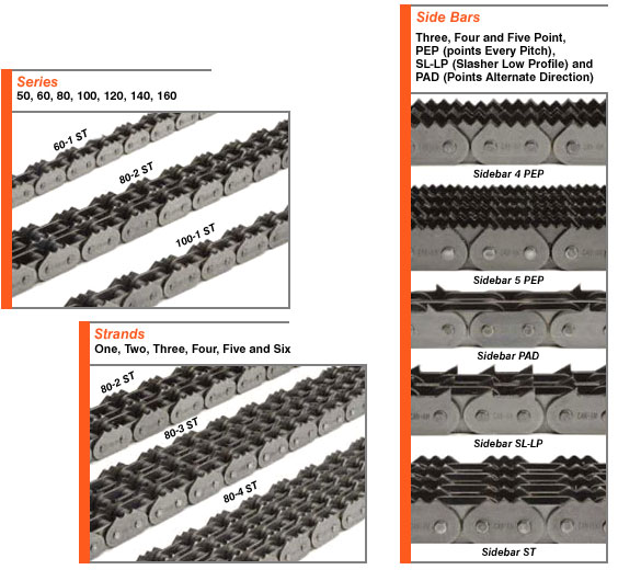 Kaikki CAN-AM terävä Top ketjut ylittääANSIjaBRITISH STANDARDSja tarkka korvaavia uusien ja olemassa olevien terävä Top rullaketjut sovelluksia. CAN-AM ketju on kilpailukykyisesti hinnoiteltuja ja helposti saatavilla mitään vakiosovelluksiin. Saatavilla on myös mukautettuja suunniteltu järjestelmiä.
